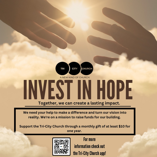 "Invest in Hope" provides an opportunity to support the Tri-City Church with a monthly gift of at least $10 for one year.